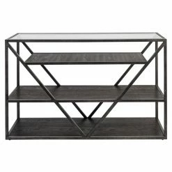 Best deal ⌛ Wood Monarch Specialties Rectangular Console Table With Geometric Pedestal 😀