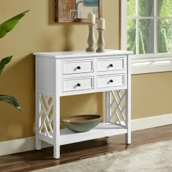 Coupon ⭐ Alaterre Furniture Coventry Wood Entryway/Console/Sofa Table With 4-Drawers – White ⭐