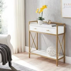 Brand new 🌟 Wood Leick Home Two Drawer Pecan Coastal Hall Console/Sofa Table With Shelf, Pecan 💯
