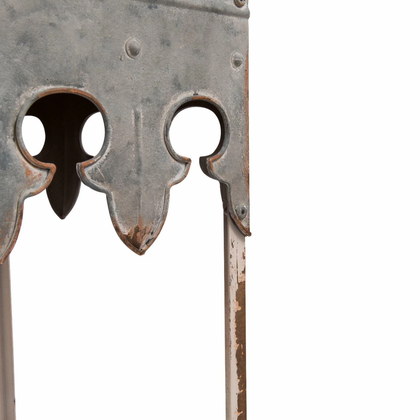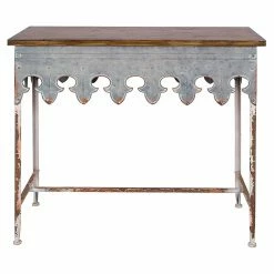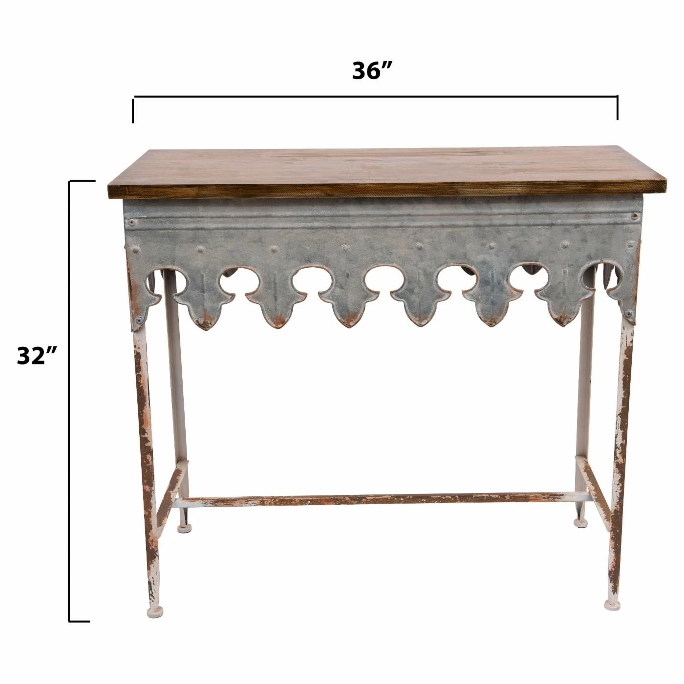 Elevate your furniture repertoire in rustic form with the 3R Studios Metal Console Table with Wood Top, featuring metal legs and a decorative, carved metal apron completed in a distressed zinc finish. This unique console table includes a brown wood top that adds a smooth, stable surface so you can display your most treasured items.