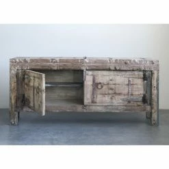Boost the rustic appeal of your living room, dining room, or hallway with the 3R Studios Wood and Metal Console with Shelves. The console is fabricated out of reclaimed wood and equipped with distressed metal hardware for an aged appearance. For storage, the console features one shelf behind each of its two doors.