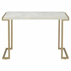 Give your space the glamour it deserves with the ACME Boice II Sofa Table. This sophisticated sofa table features a champagne-finished, open return metal base that keeps the look light and elegant. Topped with light-colored faux marble, this stunning piece brings a chic silhouette to your dΓ©cor.