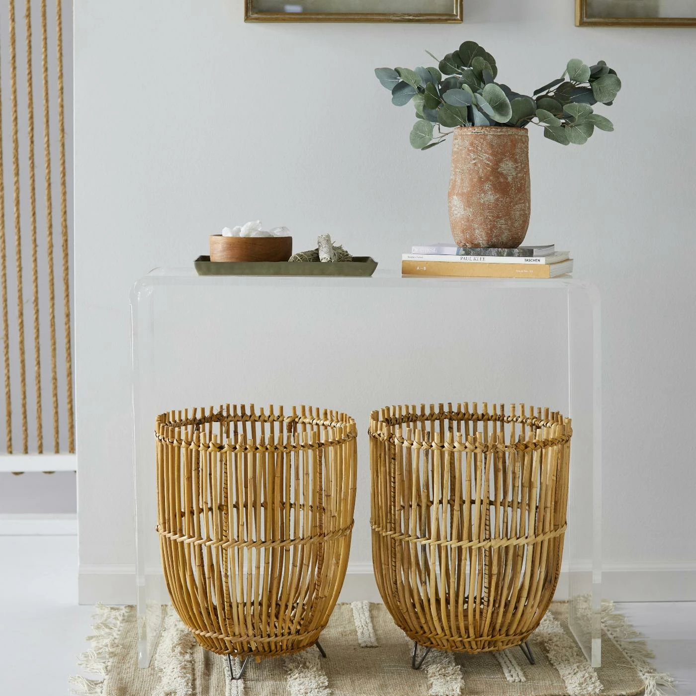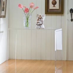 For a streamlined modern display area with the Fox Hill Trading Clear Console Table. This wide console table is crafted from a clear acrylic that makes your display the center of attention. The table is rendered from a single piece of acrylic and shaped with waterfall legs. Wipe with a damp cloth as necessary to remove dust and smudges. No assembly required.