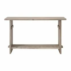 Organize your entryway, mudroom or living space with this gorgeous mango wood console. The console is both beautiful and functional, providing ample storage and style for your home’s entryway or hallway. This console has a minimalist look made from solid mango wood. The driftwood stain highlights the subtle imperfections such as knots and cracks that are part of the wood’s character. This versatile piece is great for entrance ways since it not only has a long table top where you can keep your keys or daily mail but it also has a lower slat style shelf that is ideal for keeping packages or displaying accessories.