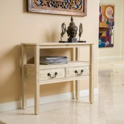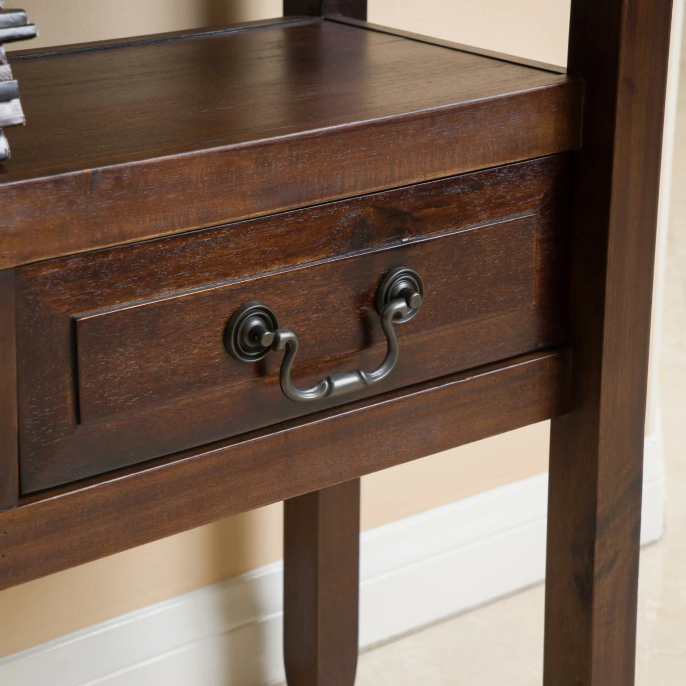 It’s a true mark of craftsmanship that a piece like the Grant Acacia Console Table can fit so much style into such a minimal form. A pair of drawers sit at the middle of a wide-bodied table made from laminated acacia hardwood. The wide top and middle shelf let you decorate with your own personal style. You can also extend that style by choosing one of the available finish options for this piece. Straight legs and vintage-style metal pulls give it a look that’s charming and versatile.