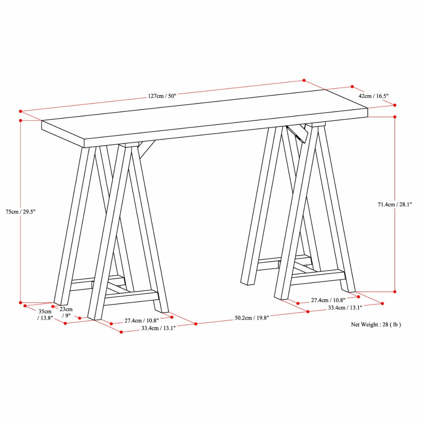 - Sturdy sawhorse supports