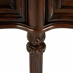 The Butler Console Table 34.5H in. – Cherry stands flush against a wall in a space-efficient arrangement. Featuring a construction of hardwood solids, with cherry wood veneers, this elegant table is built to last for many years. You can keep your valuables and accessories in the drawers or on the fixed bottom shelf of this table.