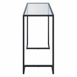 Grace an entryway, hallway, or the back of a sofa with the contemporary and sophisticated Carolina Chair & Table Co. Monaco Glass Top Console Table. This console table features a modern angular base crafted from durable, powder-coated metal in your choice of available finish options. Topped with a tempered glass top this piece is light, elegant, and easy to clean.