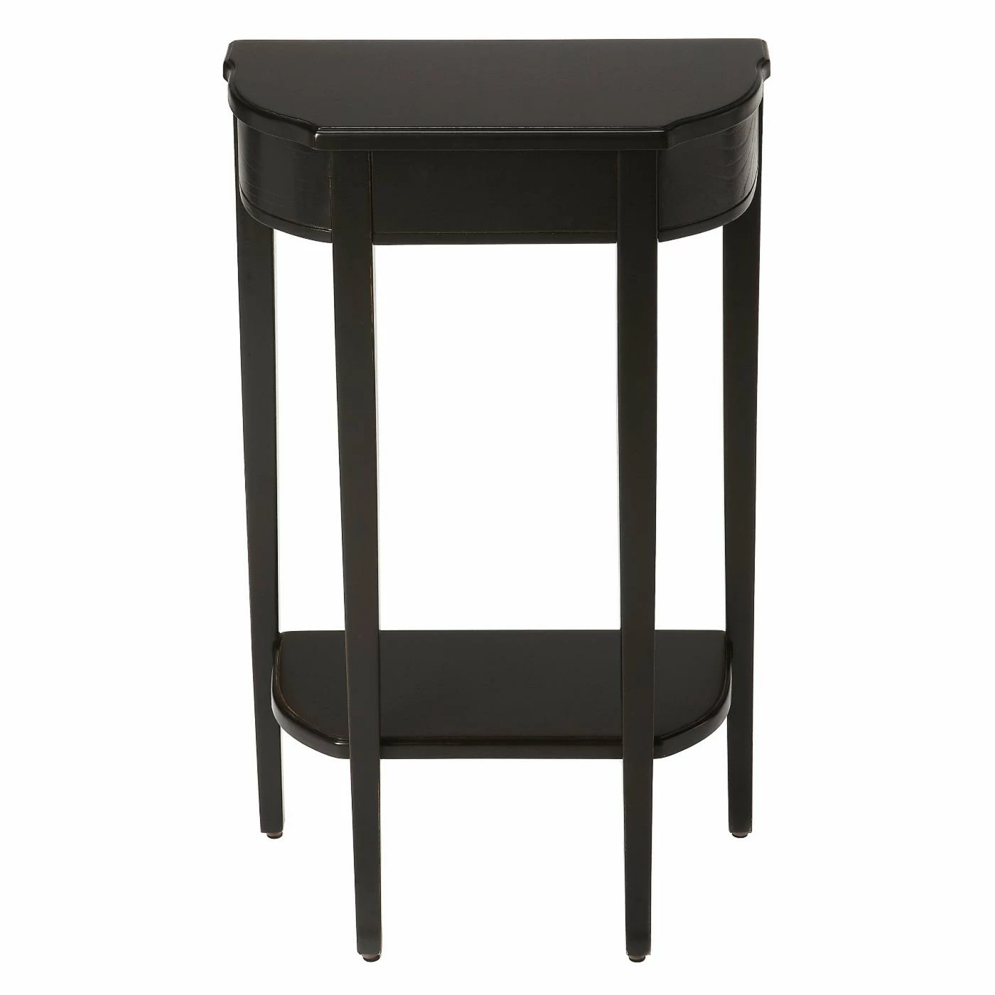Featuring a subtle curved shape, this Butler Specialty Wendell Console Table fits perfectly in tight spaces without sacrificing its display area. This lovely wooden table stands on slender legs that are gracefully tapered. A lower shelf provides additional storage or display space.