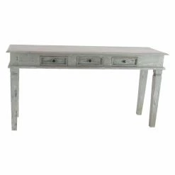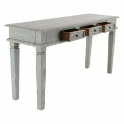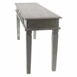 Antique elegance radiates from the rustic details of the DecMode Rustic 3 Drawer Mahogany Wood Console Cabinet. This console table rests on Marlborough legs with a striking weathered gray finish. A trio of drawers serve as the perfect storage place for household odds and ends. This console cabinet works well in living spaces and large entryways.