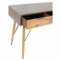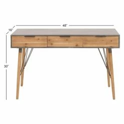 Get some extra storage space in your interior while adding some flair to your transitional dΓ©cor with the DecMode Two-Tone Wooden Console Table. The two-tone cypress wood top features three sliding frieze drawers. Simple wood legs with silver metal supports provide sturdiness and strength for the piece.