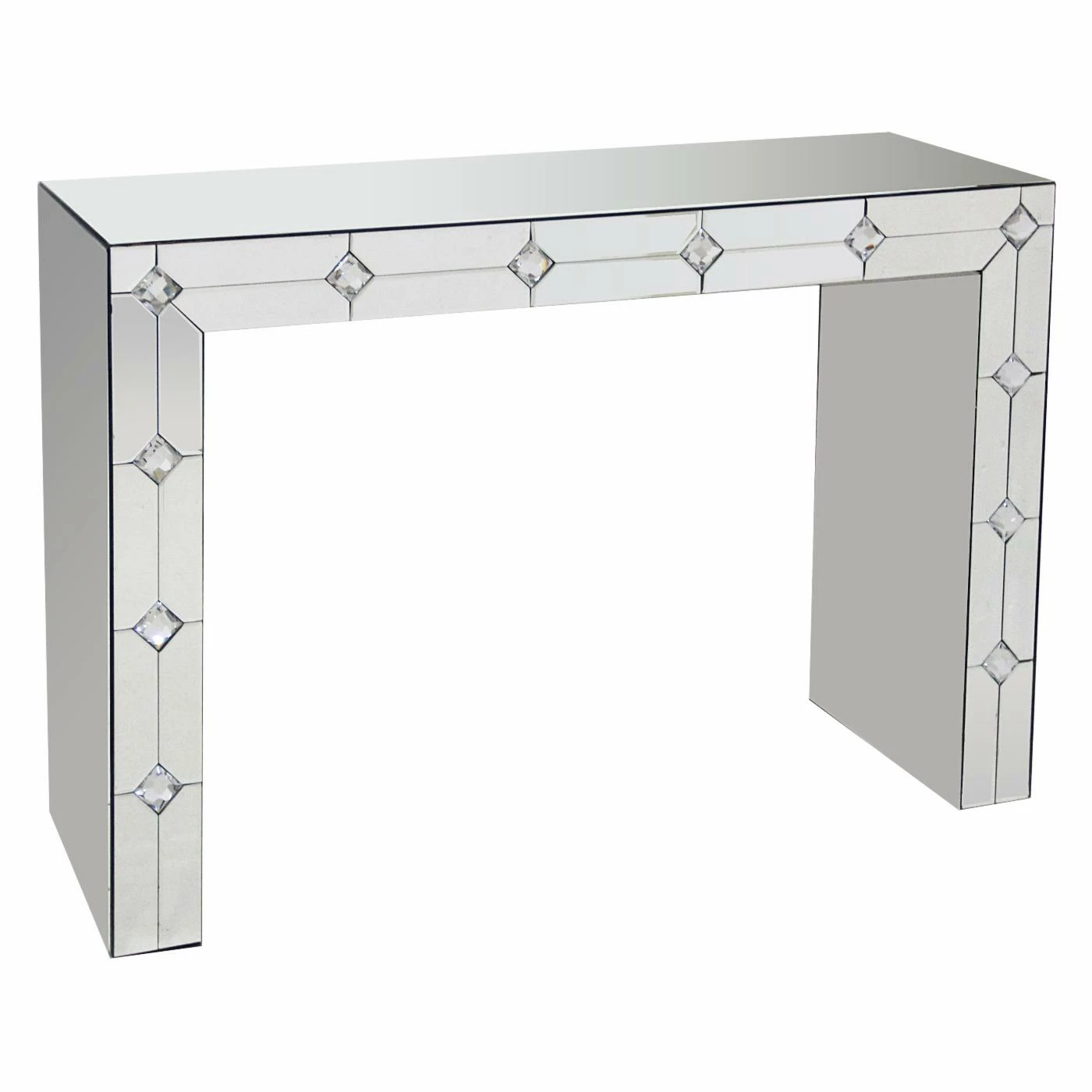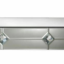 The Acme Furniture Hessa Mirrored Console Table is a dazzling combination of glamour and modernism. Light is captured and reflected from all surfaces of this chic, mirrored console table. It’s mirrored on both sides so you can style this table in the center of a room or place it against a wall. Faceted diamond-shaped crystal accents enhance the shimmer.