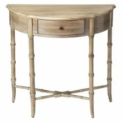 Curvaceous legs and ornamental scrollwork lend an artfully elegant look to the HGC Boston Metal Half Moon Console Table. This half-moon console table enhances your living space with a design crafted from black metal and topped with a wood top finished in rich espresso brown.
