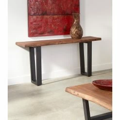 Distinctively bold, the Coast to Coast Sequoia Console Tablewill add a rustic note to dΓ©cor. This console table features a smooth acacia wood top supported by its durable iron base. Its clean lines denote a hint of mid-century modern style. With its versatile shades, this table is sure to pair with existing dΓ©cor like a dream.