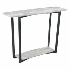 With a slim, sleek silhouette, the Convenience Concepts Graystone Console Table looks incredible behind a sofa, in a hallway, or displayed in your foyer. This ultra-modern console table is supported by powder-coated metal legs finished in a dramatic black color. The elongated top and smaller bottom sections are finished in a gray-colored faux birch that softens up the look. Enjoy ample display space and storage thanks to the roomy size and tall open bottom shelf.