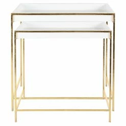 The DecMode Contemporary Rectangular Nesting Console Tables – Set of 2 brings a glamorous look to your living room or entryway with a shimmery mix of white and gold. The space-saving design features durable iron construction and tray tops. Choose from the available sizes to discover the perfect fit for your home.