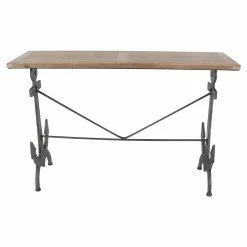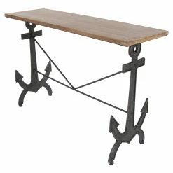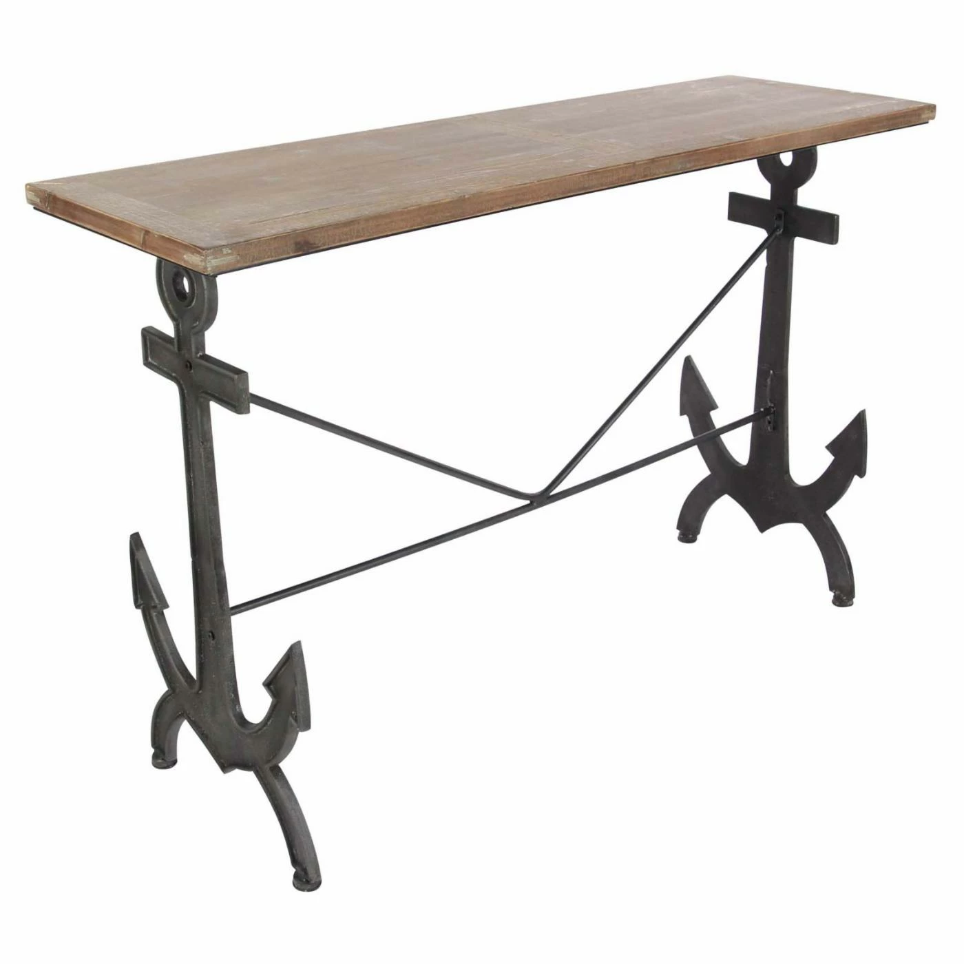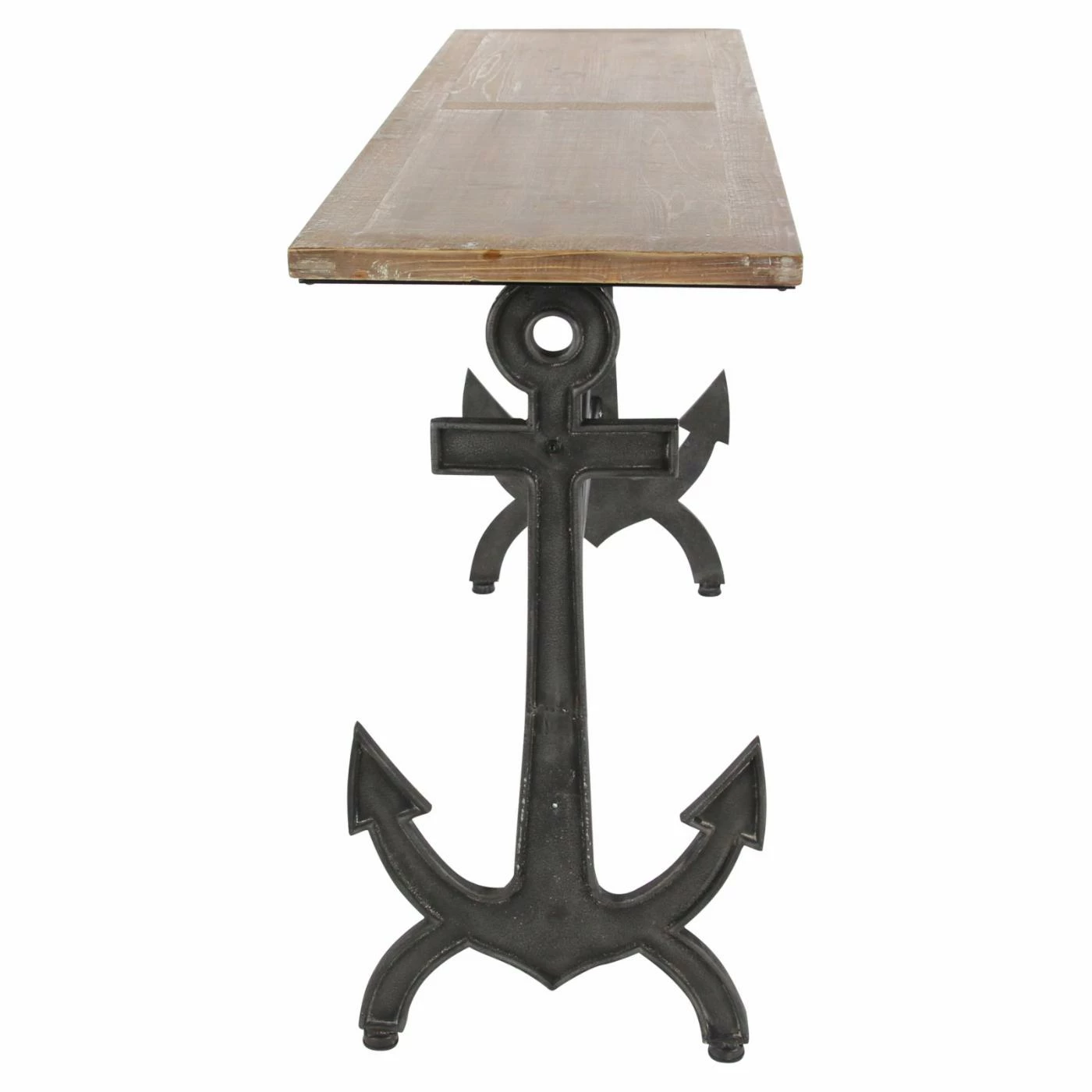 Set a nautical theme in your entryway, hallway, or living room with the charming and unique design of the DecMode Iron Anchor Console Table. The table rests on heavy-duty iron legs joined by iron rod braces. An iron anchor supports each end of the table, lending style a sailor would be proud of. A distressed finish gives the solid fir wood top the appearance of weathered driftwood.