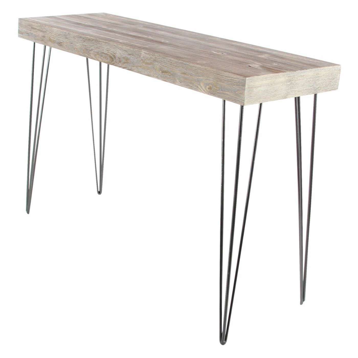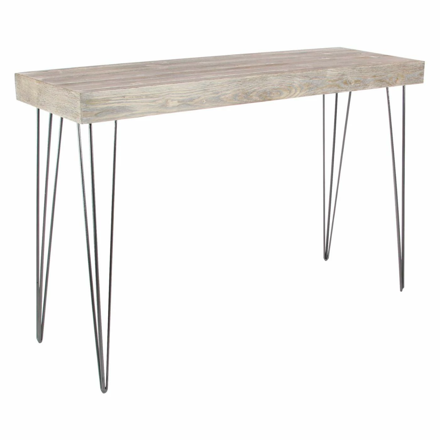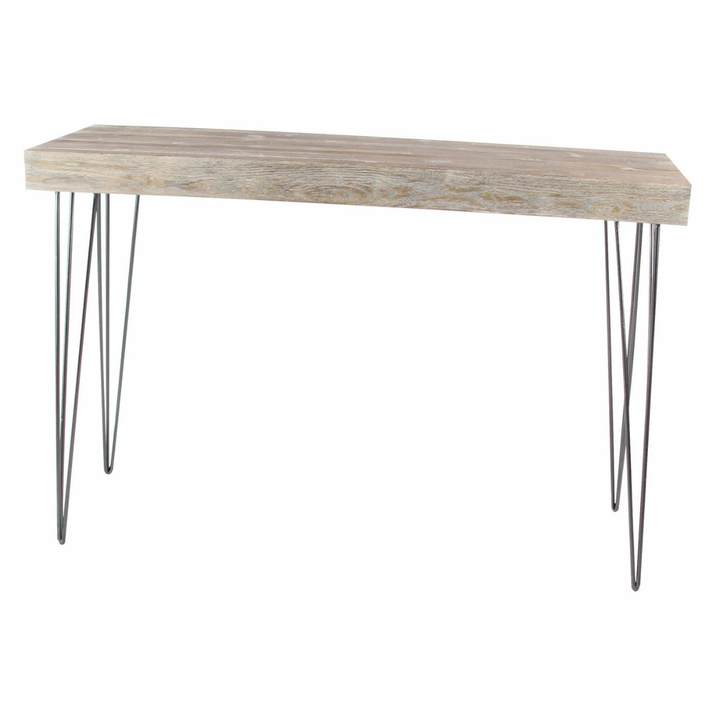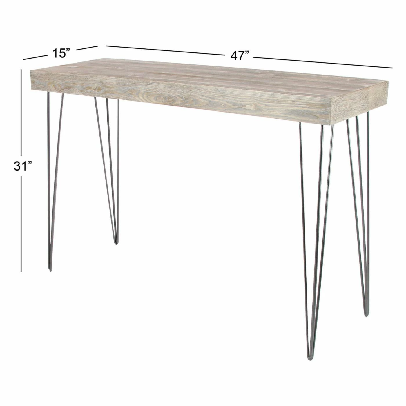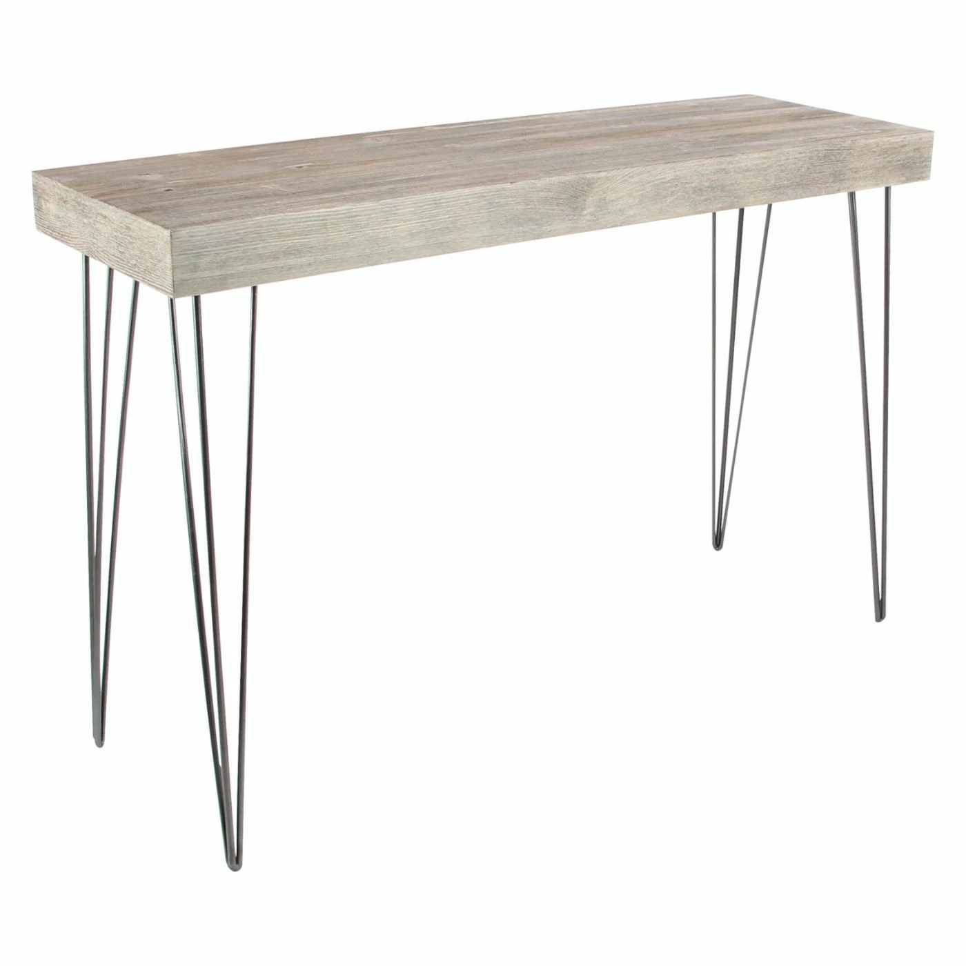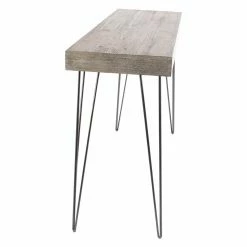 Light gray finishing adds a vintage accent to the DecMode Modern Light Gray Console Table‘s Chinese fir and engineered wood top. The gracefully angular frame of this console table is crafted from highly durable iron.