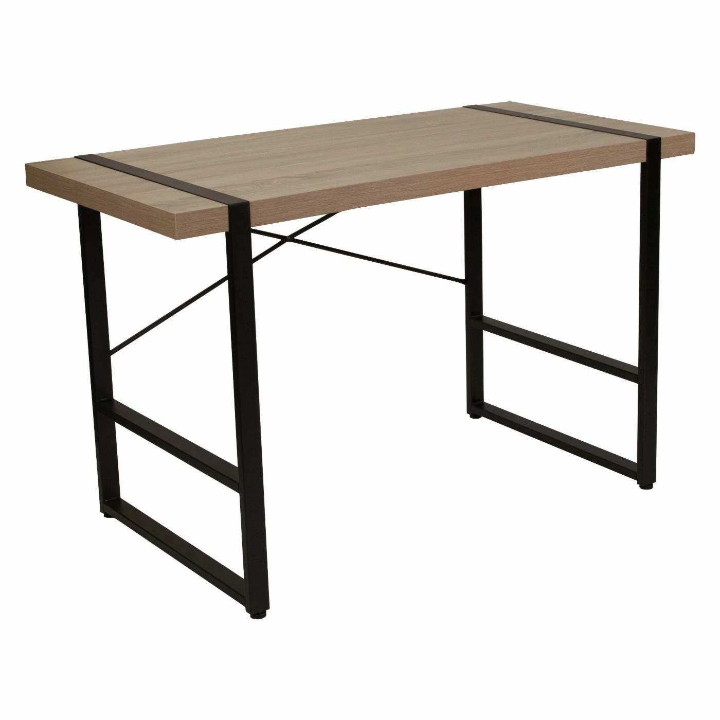 The Flash Furniture Hanover Park Console Table lends an attractive industrial flair to outfit your living room or bedroom with more storage and display space. The wide, roomy table surface is made from a thick piece of lightweight, durable engineered wood. A light rustic brown finish enhances the tabletop. Supporting the piece is a squared steel frame with an X-shaped bracer back. A deep black finishes the metal.