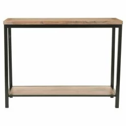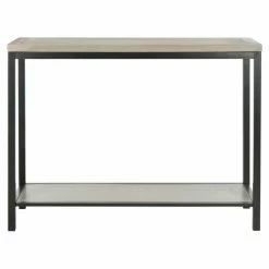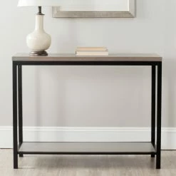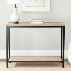 Parsons-style legs and a rectangular double-decker design give the HN Home Elwood Modern Farmhouse Console Table a simple design that can blend with many types of home styling. To ensure that the table is as durable as it is timeless, the solid elm and engineered wood console is supported by a heavy-duty iron frame. The lower shelf gives you a place to show off decorative accents or to rest baskets and bins for expanded storage possibilities.