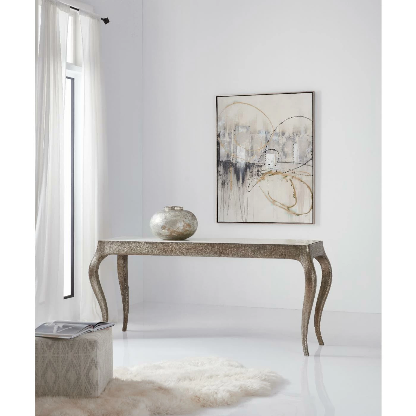 - Silver foil in champagne color with silver and gold tones with white marble top