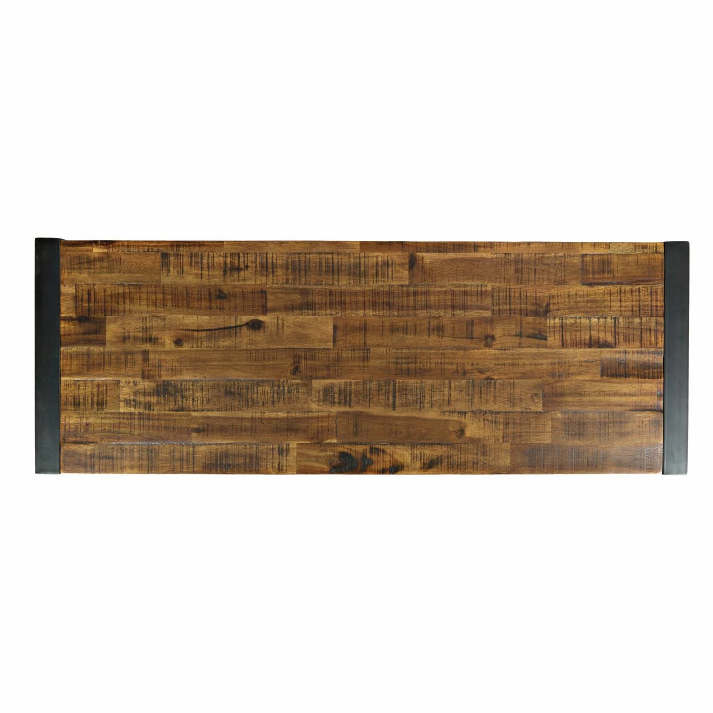 This Jofran Loftworks Sofa Table showcases industrial sophistication in its stellar design. This sofa table is supported by a sleek frame and finished in warm shades of brown and black. A trio of wooden shelves offer ample storage and display space.