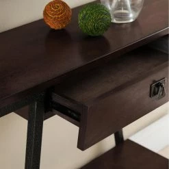 A narrow design lets you fit the Leick Home Empiria Hall Console Table easily against a wall or along the back of a sofa to maximize your living space in compact and functional style. The frame is crafted from durable stainless steel and then given a textured finish with smelted bronze to create contrast with the sleek wood top and shelf. A solid drawer glides gently on extension ball bearings, offering convenient storage for your living space. The lower shelf is ideal for organization and display.