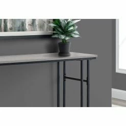 Enjoy the highly-functional Monarch Specialties Modern Shelved Console Table that will be a smart addition to your home. A perfect fit for your favorite decorative items such as your photos, collectibles and even your keys after a long day of work, this accent table can be placed in the entryway or even behind the sofa. Featuring a sleek reclaimed finish in a gray wash color, the solid black metal H frame provides stability. This console is sure to bring a fashionable touch to your home, apartment or condo.