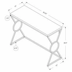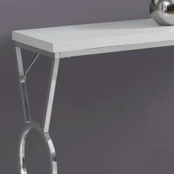 Create a sleek, minimalist display in your entryway or living room with the luxe Monarch Specialties Rectangular Circle Leg Console Table. The engineered wood top features a glossy white finish and the metal base has a chrome finish, so this table stands out in a crowd. The base also has circular and X-shaped designs for added dimension. Top the console table with a pair of modern table lamps or chrome-finished decorations.