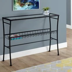 The Monarch Specialties Rectangular Glass Top Console Table with Basket Shelf is a solid, modern-looking piece that will look great in your hallway. It offers plenty of table space to display photographs or other decorative items, and the basket-style shelf will be ideal for your purse or wallet.