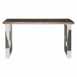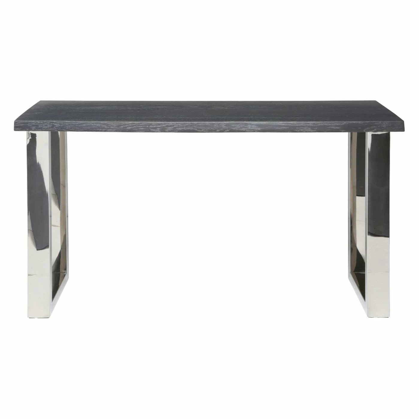 Perfectly proportioned, the Nuevo Lyon Console Table delivers the form and function that you deserve. Contemporary design combines the chrome rectangular legs with a solid wood top with choice of modern stain.