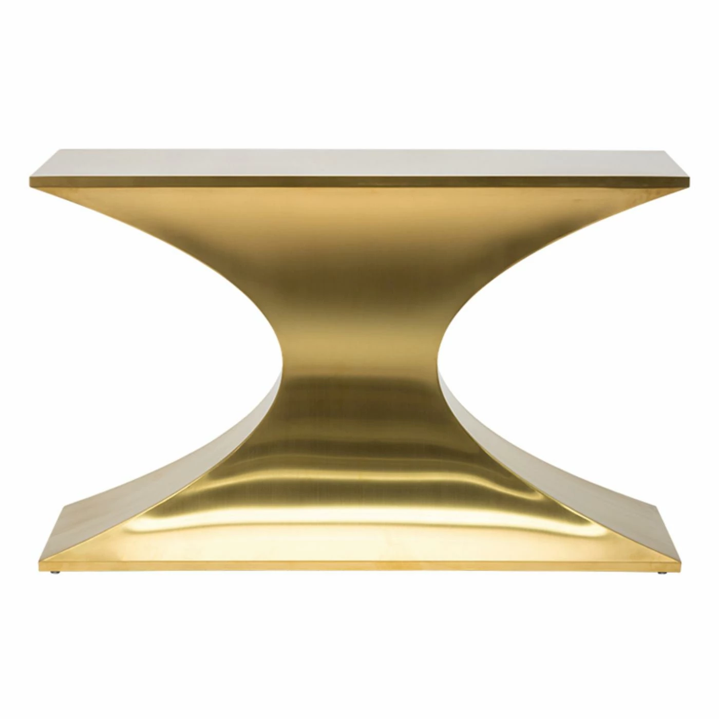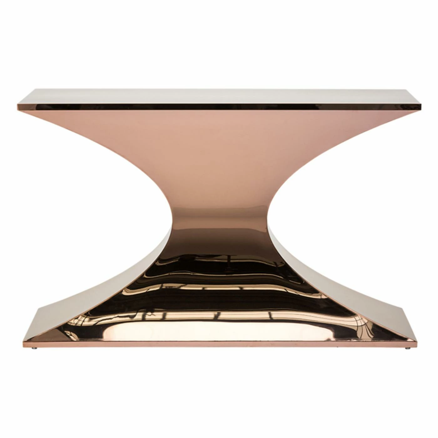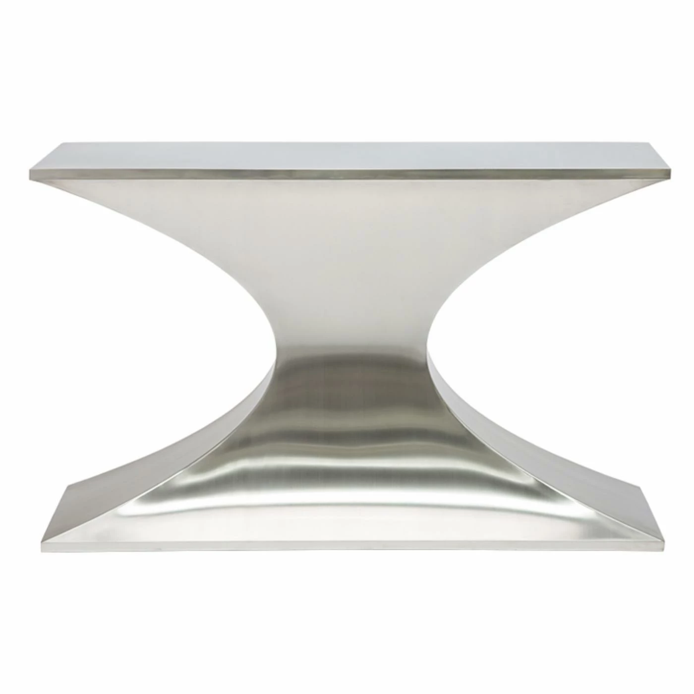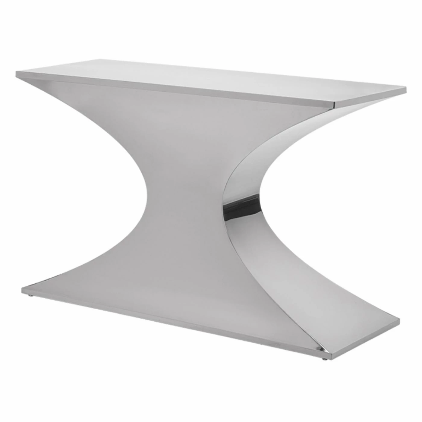 The Nuevo Praetorian Console Table is designed to incorporate the latest trends into elegant style. This high quality classic console table is made of stainless steel and is available in your choice of contemporary finishes. The rectangular top offers functional practicality, while the curved base offers modern style.