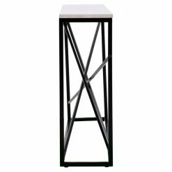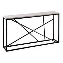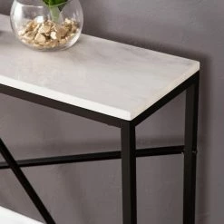 A sleek geometric design makes the Southern Enterprises Arendal Skinny Console Table a beautiful addition to your transitional home. This console table boasts a black iron frame topped with white faux marble. Its narrow profile is perfectly suited as a space-saving unit in your entry way, behind the sofa, or beneath your wall-mounted TV.