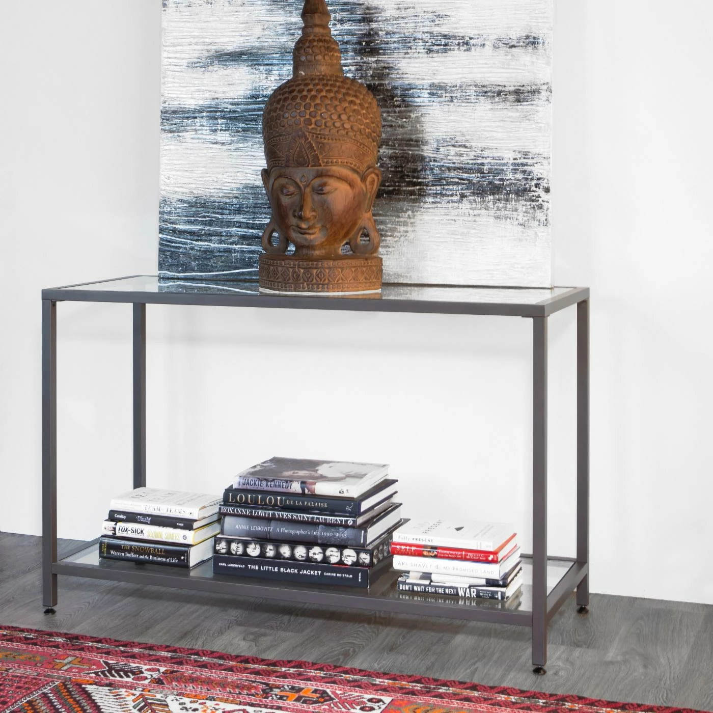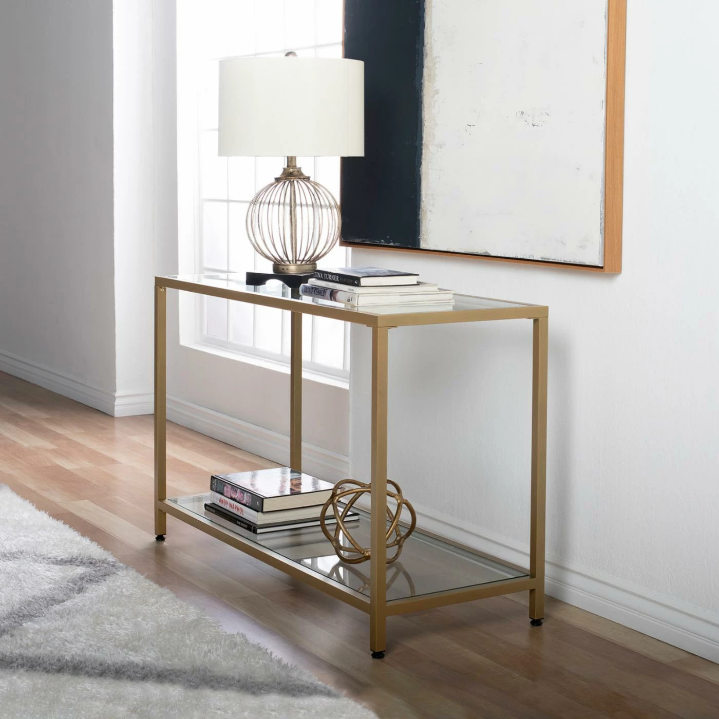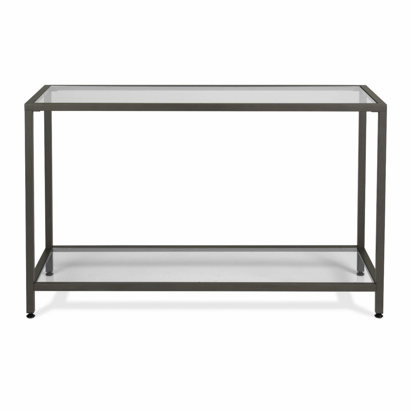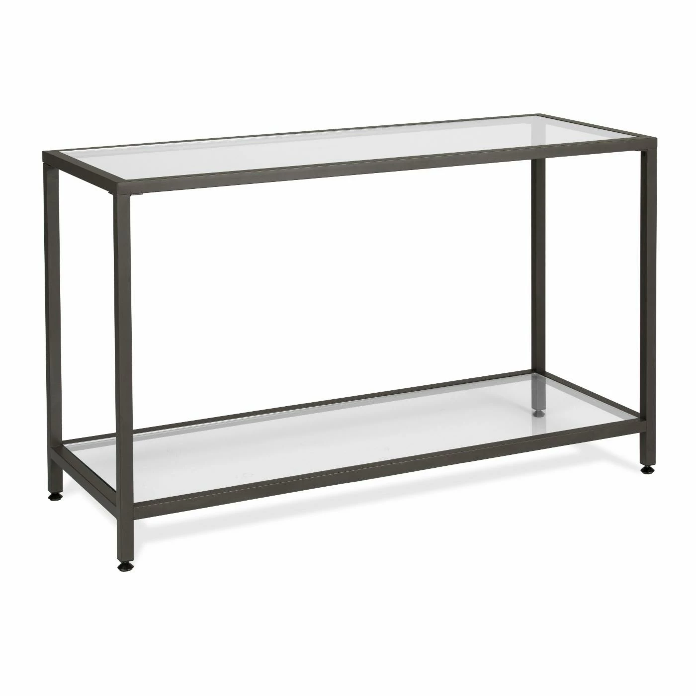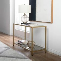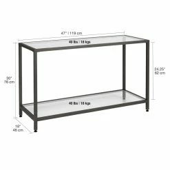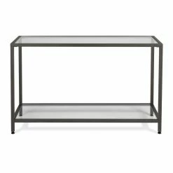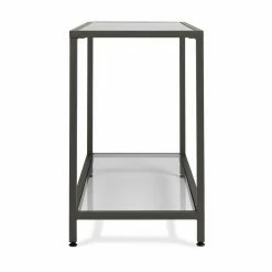 This Studio Designs Camber Console Table boasts an alluring minimalist motif that complements any smartly arranged space. A durable metal frame ensures lasting use while the glass tabletop and bottom shelf offer ample storage space for magazines, books, remotes, and more. This console table is finished in a choice of finish that coordinates with various living room dรฉcor. You’ll find it ideal for placing in living rooms, hallways, and bedrooms.