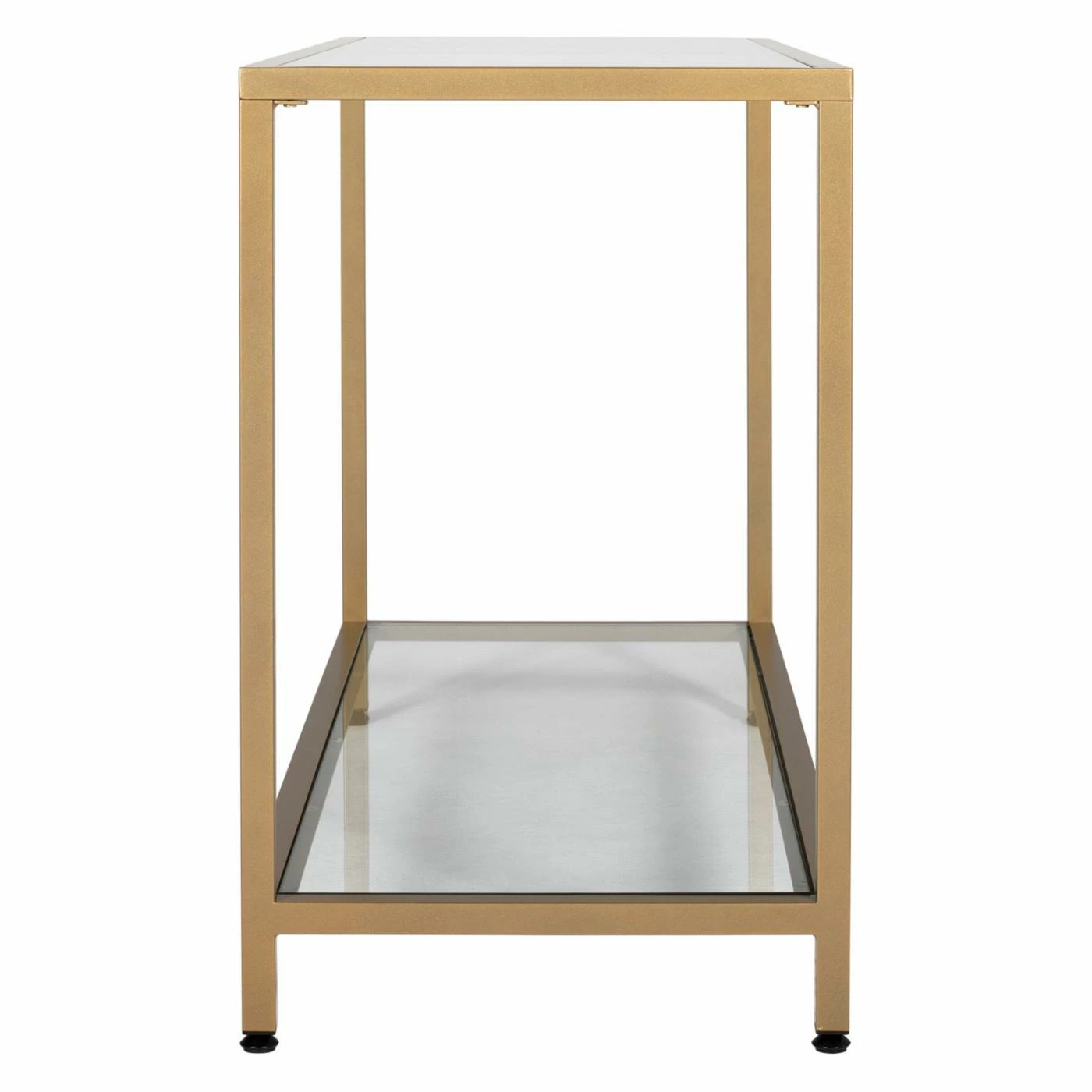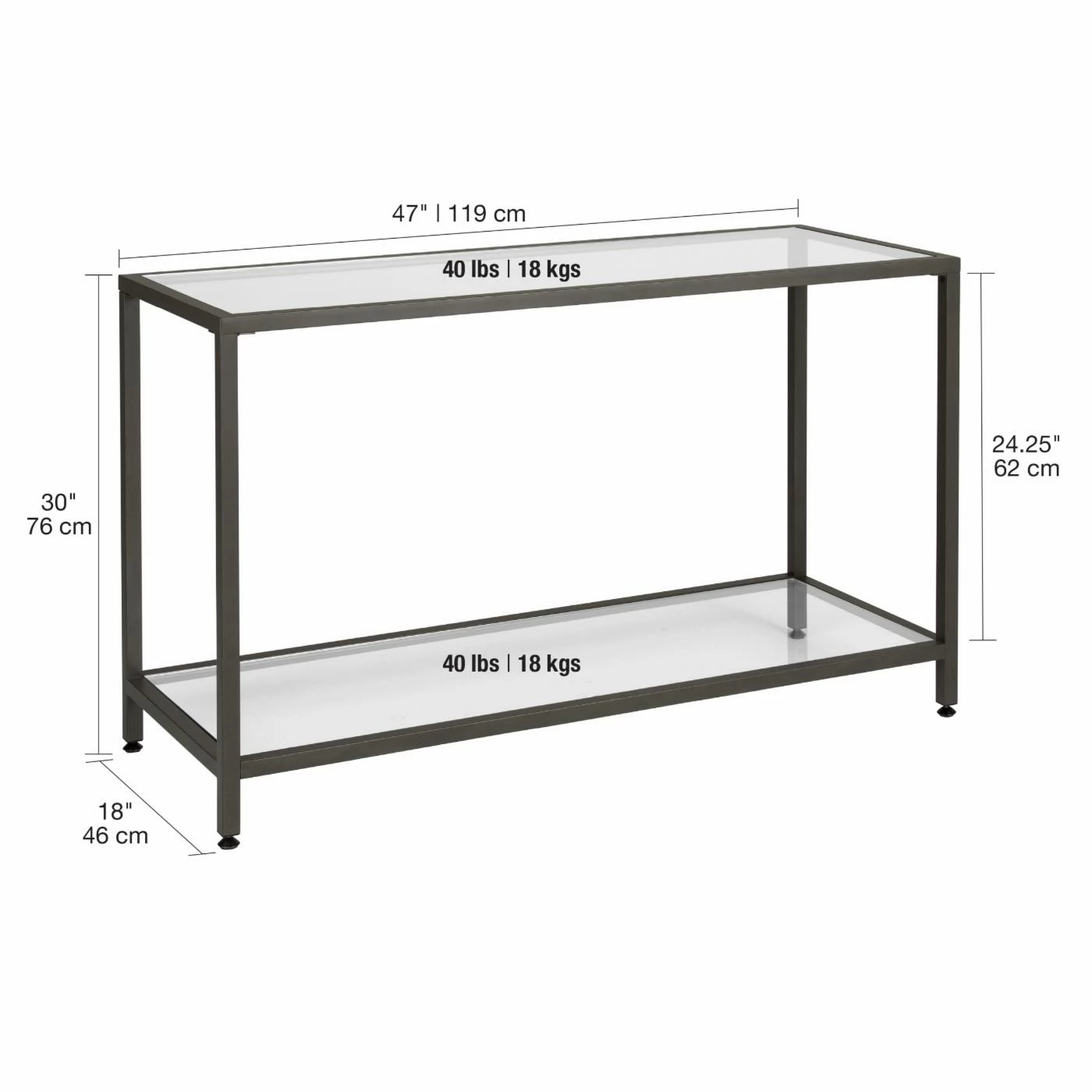 - Clear tempered glass top and shelf