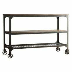The Weston Home Rectangle Sofa Table just wants to fit in. And it can, in any rustic, industrial chic, or modern home. Simple, clean lines embody a look that’s taken straight from the craftsman’s workroom. One wire mesh shelf and one wooden shelf at the center of this piece can hold books, dining paraphernalia, or treasured art objects.