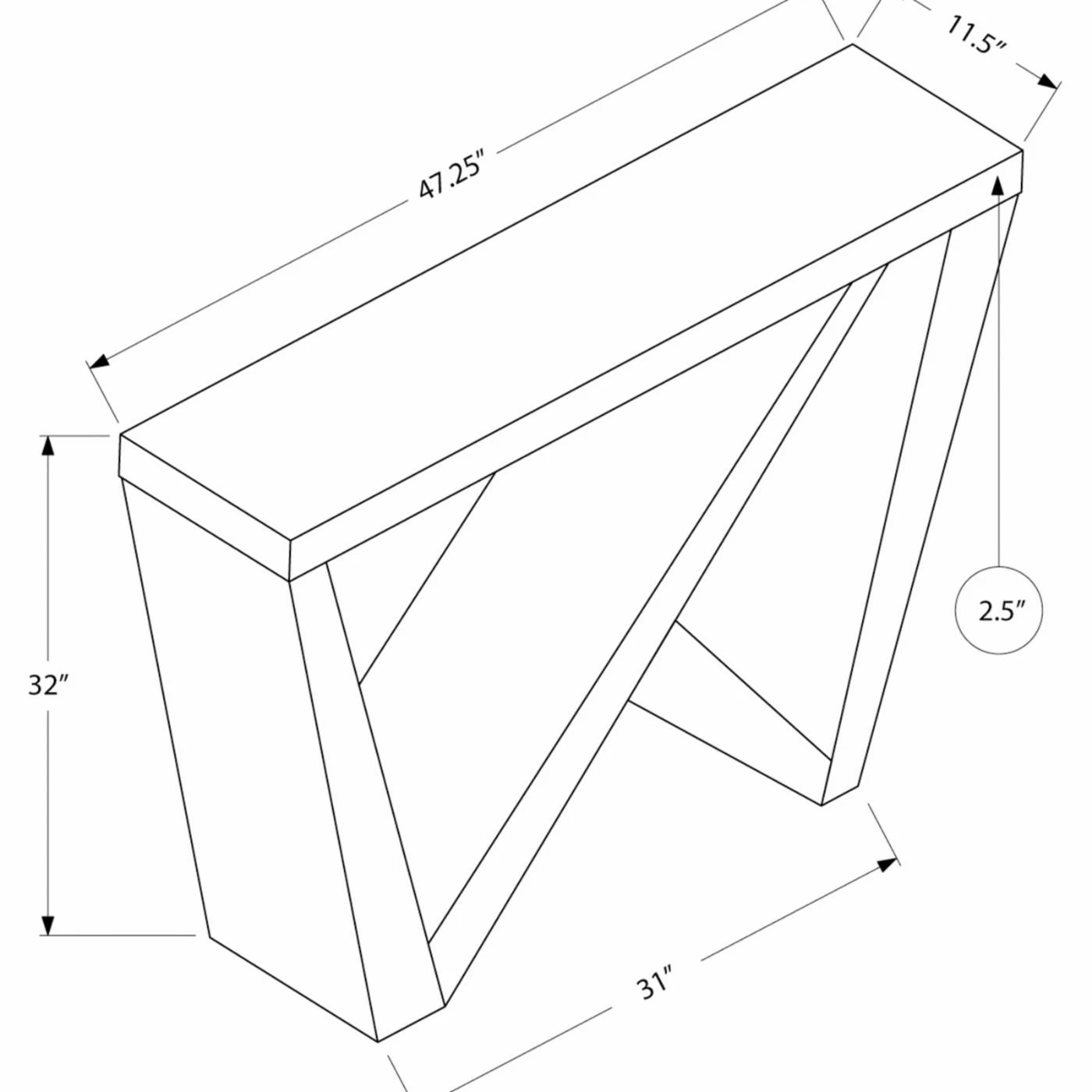 The Monarch 48 in. Hall Console Table is a thoughtful way to add artistic flair to any living space. With a practical rectangular surface, you can display precious items, books, or even your keys and daily mail. The asymmetrical frame offers a modern, bold presentation. This table is an accent piece, statement piece, or even a conversation piece, depending on how you decide to utilize it.