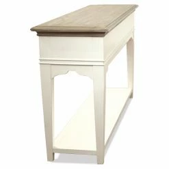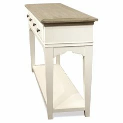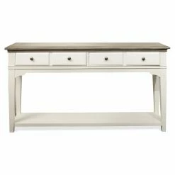 From entryways to living rooms, the Riverside Furniture Myra Leg Sofa Table combines quality craftsmanship with style and function. The convenient drawers keeps items neatly out of sight while the open bottom shelf displays your favorite plants or collectibles. Details like dovetail joints, smooth-rolling glides, and tip-restraining hardware are what set this console apart from the competition and make it a must have.
