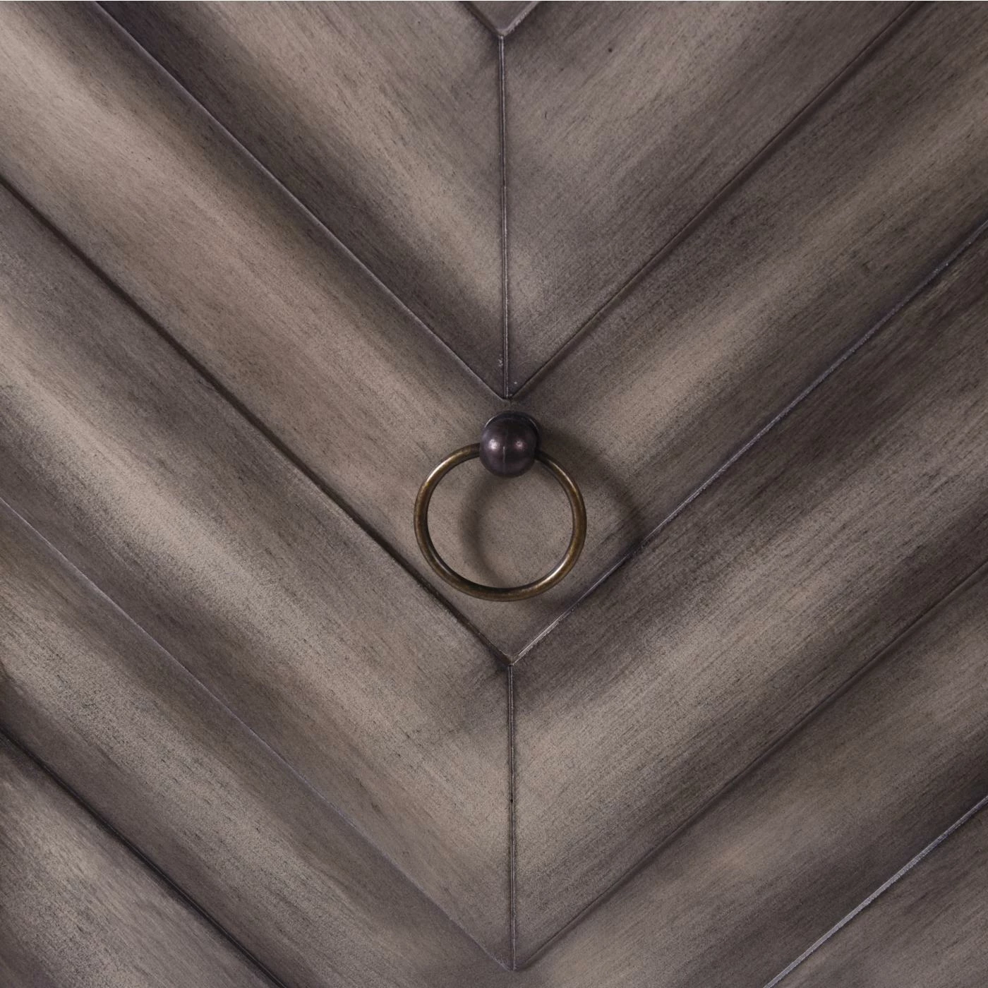 From its striking chevron pattern to its cool slate gray finish, the StyleCraft Chevron Patterned 3 Door Reclaimed Wood Console will steal the show in your space. Its three doors open to excellent storage, allowing you to stow odds and ends, books, and more. This console features a reclaimed wood construction that’s built to be reliably durable. The doors are equipped with metal hardware for a chic finishing touch.