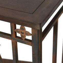 The beauty of a garden gate can be part of your indoor space with the StyleCraft Filigree Metal and Wood Console Table. This console table features an open metal base with a filagree cage design and a wood tabletop. The entire table features a distressed dark brown finish for a reclaimed look. Use it in your entryway, living space, or dining room.