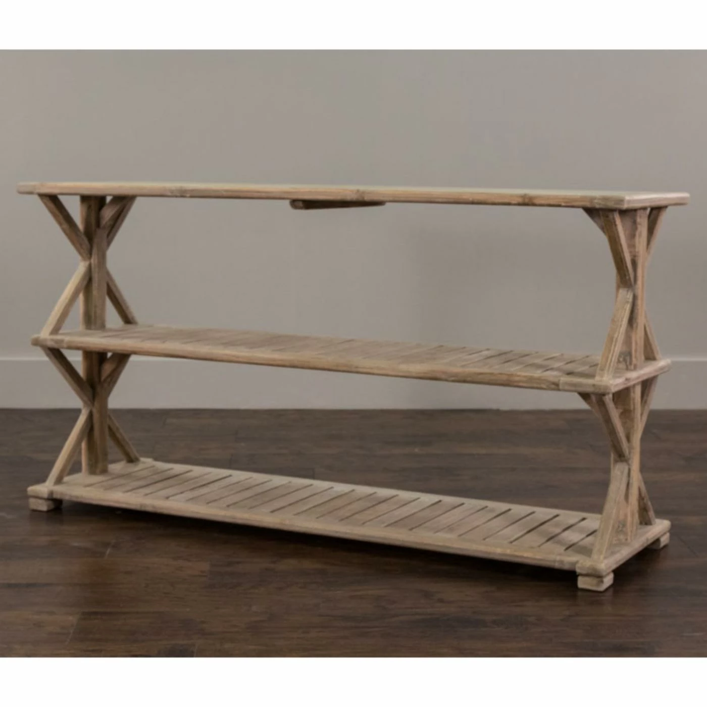 This East at Main Promenade Rectangular Console Table boasts quality teak wood and solid wood construction with a rich brown finish. Easy to clean and artisan handcrafted, this console table is equipped with two shelves for storage and display space.