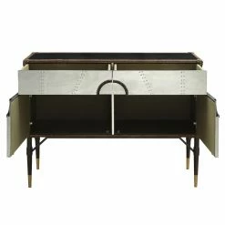 The Acme Furniture Rosy Console Table brings an eclectic vibe to living rooms or entryways by featuring a blend of materials and finishes. The sturdy design features smooth-rolling drawers and a spacious cabinet that adds extra storage for small and larger items alike. With chic and sturdy details like top-grain leather trim and reinforced legs, it’s easy to see why this table is the perfect choice for your storage table needs.