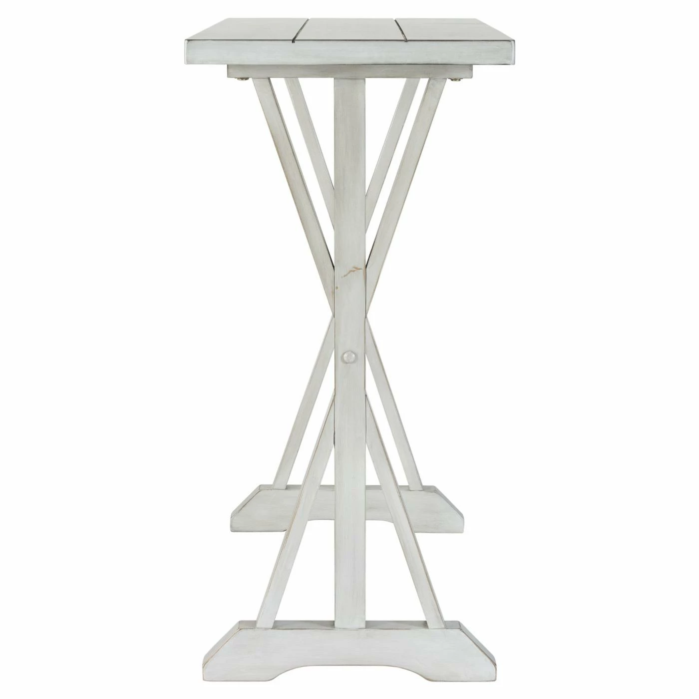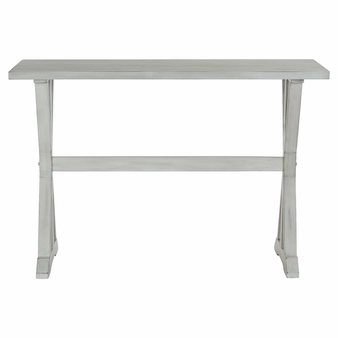 The Boraam Jamestown Rectangular Console Table is a rustic perch for your television. This console table is crafted from strong engineered and solid wood. The white washed finish and trestle detailing give it a farmhouse-inspired look.