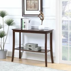 The perfect addition to any room in your home, the Convenience Concepts Designs2Go Baja Rectangle Console Table features gently flared legs and a rich finish that complements your transitional dΓ©cor. A lower shelf provides extra storage and display space.