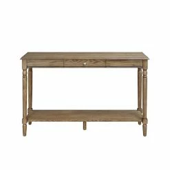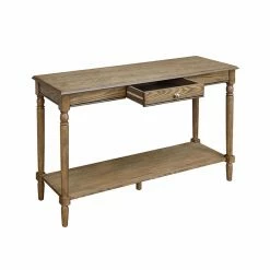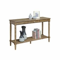 Enjoy the traditional style of the Convenience Concepts French Country Console Table with Drawer and Shelfย and its solid wood construction. This fine console table has more than enough storage with its pair of shelves and drawer with a shiny brass knob. It has attractive lines and a finish of your choosing to really round out the look.