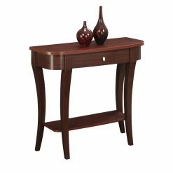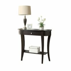 Complete your entryway or living room with the sophisticated beauty of the Convenience Concepts Newport 1 Drawer Console Table. This lovely entry table features curved style lines for a soft and inviting look. A single drawer and lower shelf provide additional storage space.