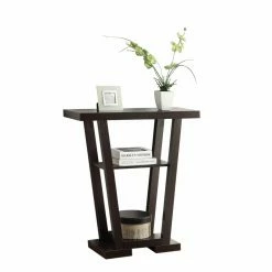 Contemporary and sophisticated, the Convenience Concepts Newport V-Shaped Console Table makes a modern addition to your dรฉcor. This angular console table features three surface areas to display your favorite accent pieces. Choose from the available finishes to find the perfect complement to your style.