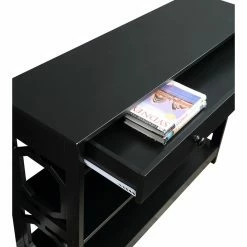 Make your study, office, or living room feel finally complete with the Convenience Concepts Omega 1-Drawer Console Table. This console table has a spacious top for display of your favorite gifts and souvenirs. Two lower shelves make a handy bookcase or storage area while a full-width drawer offers concealed storage for small items and supplies. The console table’s frame is made from engineered wood with open side panels, accented with octagonal slats. Choose from available finishes.