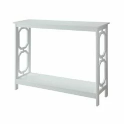 The Convenience Concepts Omega Console Table infuses contemporary design into your home with unique openwork geometric accents on each side. This totally modern console table has a slender profile so it fits well in hallways or small spaces. The bottom open shelf adds extra room for storage or display, and it comes in your choice of available finish to craft the perfect look.