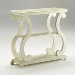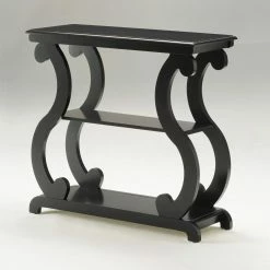 Scroll legs are the eye-catching design element on the Crown Mark Lucy 3 Tiered Console Table. The three tiers on this piece provide space for you to decorate to your style. From books and candles to lamps and decorative pieces, this table will hold it all. This console table is constructed from engineered wood and features your choice of available finish options.